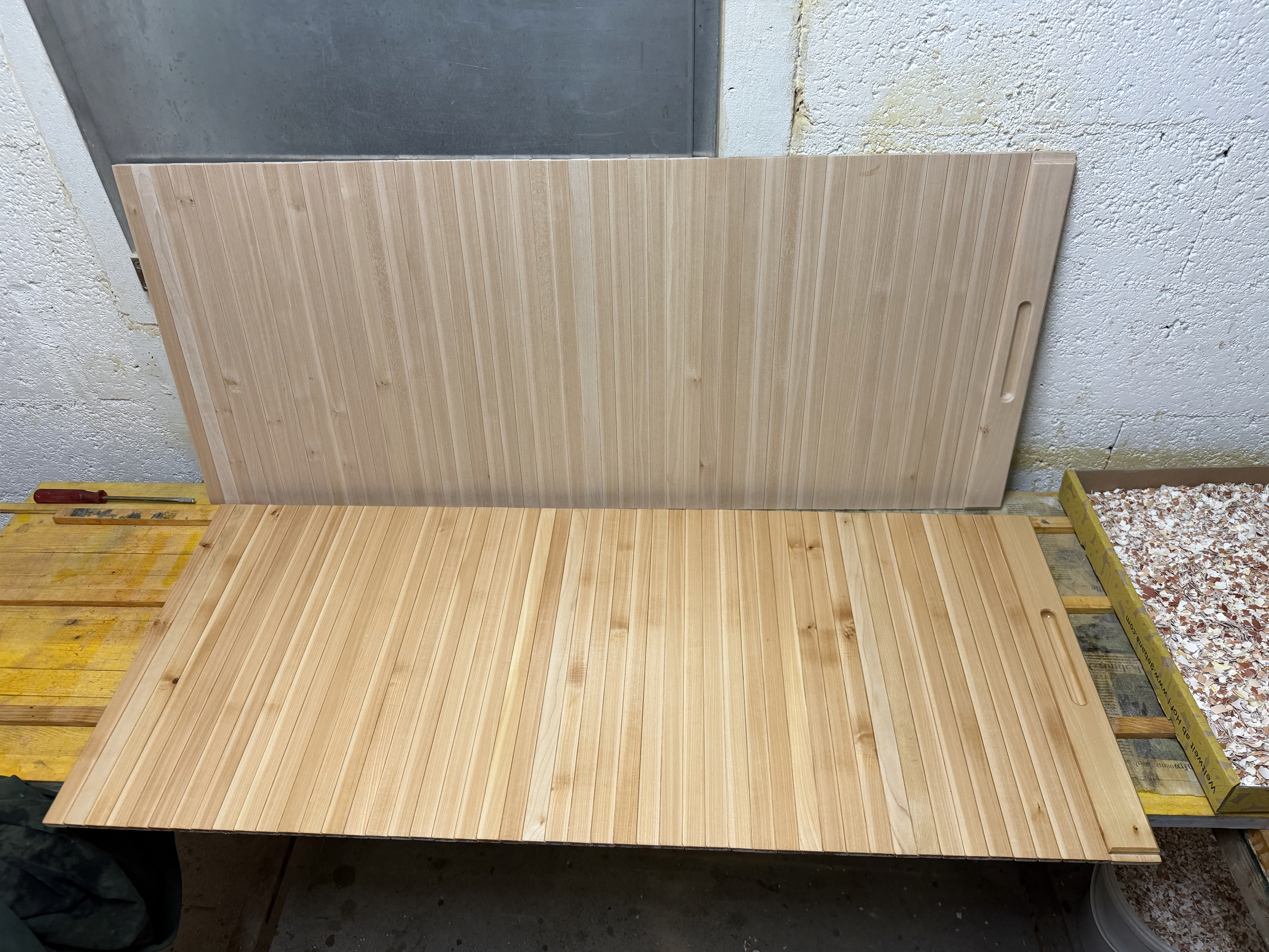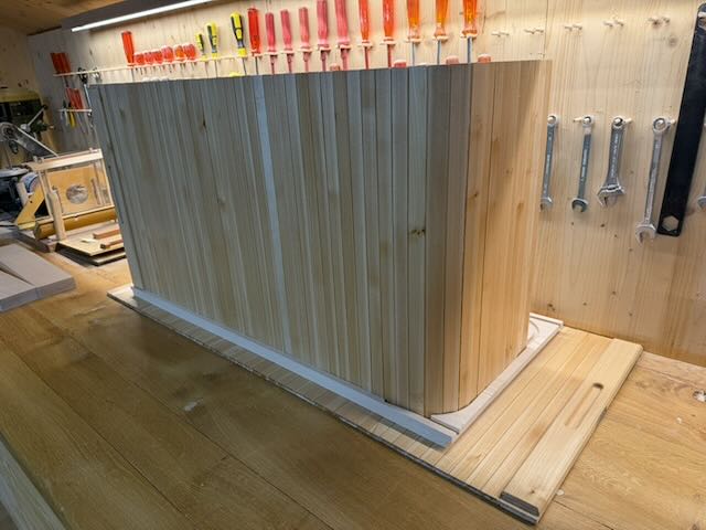 Le 26 octobre 2025, coupes des éléments des faces latérales pour obtenir la largeur d'environ 430 mm.