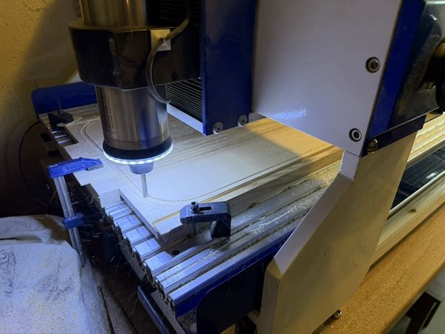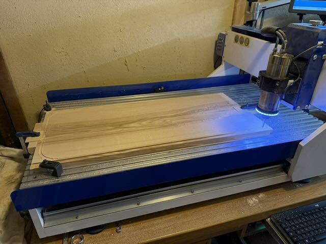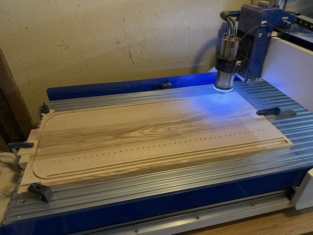Le 19 novembre, fraisage des rainures d'un côté et pour la première fois, utilisation du maximum en longueur (920mm) de la CNC.
